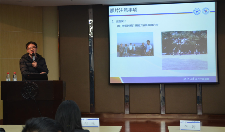 随后,李涛老师着重讲解了beat365平台唯一官网新闻稿的具体要求。为了给大家提供最实际有效的技巧,他举出了几个学院新闻中出现的不规范的例子,从文字内容注意事项和照片要求两个方面进行介绍。培训现场气氛欢快,老师与同学们开展了欢快的互动与交流。