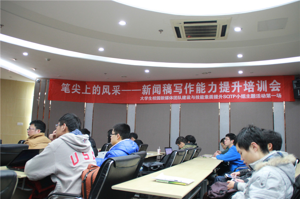 短短的一个半小时里,梁老师亲切的笑容和丰富的举例为会场增添了不少轻松的氛围。同学们在认真聆听、思索的同时,也一一作下了笔记。在会后的讨论中,SQTP小组成员纷纷表示这次的培训获益良多,不仅让我们认识到自身在新闻写作方面的不足,也为大家今后的新闻写作提供了经验和灵感。金晗同学感触最深的是梁老师强调在按时间顺序写新闻稿时应尽量避免出现“接着”、“然后”等字眼,这正是自己平时常常犯的错误,受梁老师的启发,除了按时间顺序,还可以以重要性为顺序进行创新写作。贺家发同学则谈到在以后的新闻撰写中会更多地重视新闻稿规范以及技巧的使用,让新闻稿更加具有丰富性和吸引力。