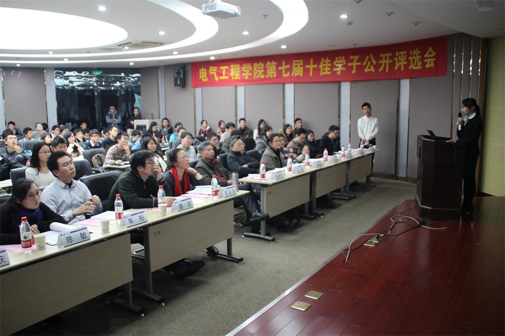 首先,王玉芬老师介绍电气学院“十佳学子”评选活动的概况以及本次评选的规则。随后就是最吸引人的候选者风采展示环节。20位十佳学子候选人在四分钟的展示环节里,从学习经历、学术科研、社会工作、文体素质等方面全方位立体的展现了自我,他们当中,既有被老师誉为不可多得的科研人才,又有为学院学生工作尽心付出为学院争得各项荣誉的优秀学生干部;既有沉心于各项竞赛的大牛,又有写得了诗歌玩得了创作的文艺男青年和萌妹纸,充分体现出电气人才的专业技能和综合素质。评审团老师们或犀利或幽默的发问也引发全场积极的响应,候选者的回答也是妙语连珠,引来不少好评。