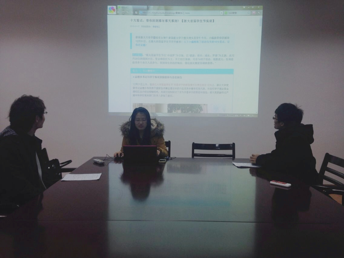 首先,李瑞同学对近期微信公众平台的相关工作进行了总结,指出了大家在微信内容编排上存在的不足。一是单纯的复制粘贴现象比较严重,二是内容编排形式单一,缺少新意。她认为,新媒体作为一个年轻化,有活力的平台,应该为读者提供更多可读性和易读性高的内容而并非网络消息的搬运工,因此在消息编排上应把更多的精力放在消息的再加工上,要注重语言风格,迎合学生的兴趣点,打造一个有活力的新媒体平台。