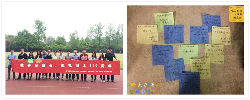 最后,大家在比赛终点操场集合,给各队颁发了手写的奖状和解渴的水果作为奖品,并合影留念。活动尾声收集了支部成员对母校的祝福,我手写我心,辅以图文,制作成明信片,以我们的实际行动献礼浙大建校120周年,表达了自己对母校的热爱,将这份感情和热爱内化于心,外化于形。