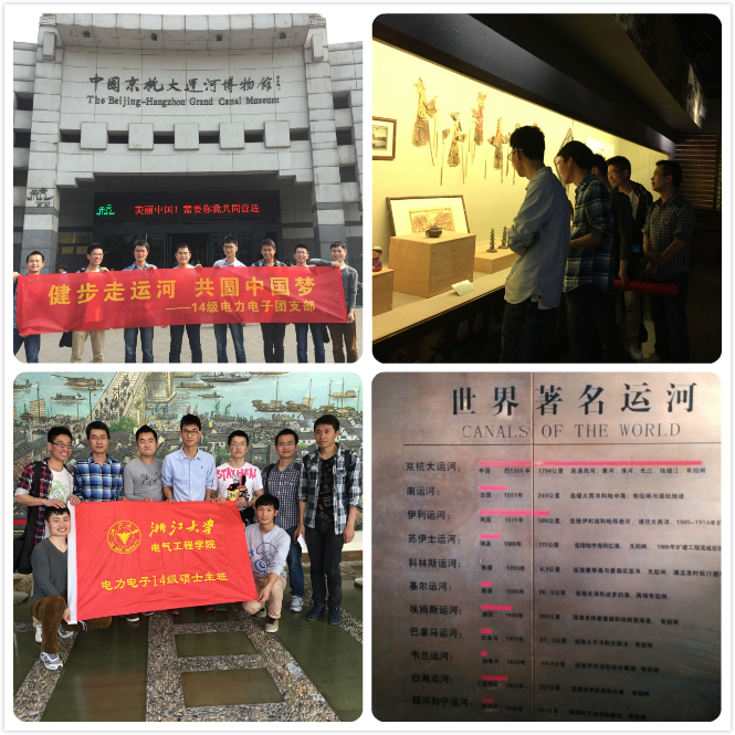 2015年 4月18日,为了让班级团员在忙碌科研生活能在身心上得到放松,从身边的文化遗迹中去提取传统文化的闪光点和精华,结合了大运河文化在杭州历史文化中的影响作用以及活动实践的可行性,由电力电子14级硕士生团支部组织开展的以“青春勇担当,共筑中国梦”为主题的主题团日活动在京杭大运河沿岸正式开展。
