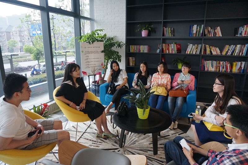一个多小时的公交路程后我们抵达梦想小镇,舒适而又不乏现代化气息的建筑楼让大家眼前一亮。放眼望去,建筑楼一幢连着一幢,好似一个网络系统,相互之间都可以通信交流,红色的砖墙也让人感觉很温暖。在稍等片刻后我们见到了弧途行者文化创业有限公司的运营总监,也是与我们相差不大的90后。我们称她为小敏姐。首先,小敏姐带我们去参观了梦想小镇的一些重要基地——孵化器和加速器,称之为“粮仓”。这里完全是一个开放的环境,同一个空间里可以容纳好几个公司,创业初期的公司将在这里孵化自己的产品,不同的公司之间可以直接面对面地交流,办公空间和基本设施设备都是免费提供的,特别是宽敞的空中会议室令我们印象深刻。孵化期满后,项目进入加速器,终止项目限期退出。在加速器阶段,创业项目享受管委会“育成计划”企业跟踪式定制服务。据小敏姐介绍,这里的工作环境真的很开放很自由,员工可以在办公室里办公,也可以根据需要跑到楼外的小桥流水边工作,还可以在休闲书吧或咖啡吧里干自己的活,大伙听了都羡慕不已。