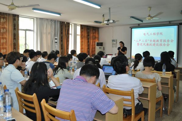 为深入学习贯彻习近平总书记系列讲话精神,持续推进党的思想政治建设和作风建设,电气学院积极响应学校“三严三实”专题教育活动部署,于