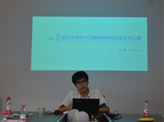 随后,电气研会主席赵睿同学为大家做研会工作展示,互动管理、学术交流、文体活动、社会实践四个方面是电气研会的主要工作内容,而在学院大力支持下开展的S.C.I.研究生发展论坛、新生合唱比赛、六院联谊迎新舞会等同学们喜闻乐见的活动更是覆盖到学术、文化、体育等方方面面。