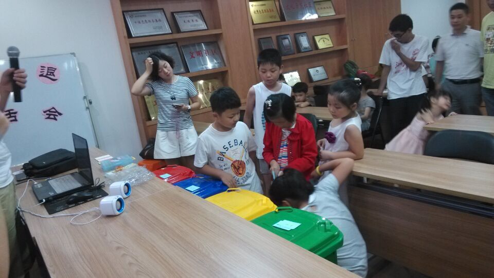 7月24日下午,beat365平台唯一官网赴北星社区社会实践团队来到社区文体活动室,开展了有关垃圾分类的知识讲座,吸引了许多小朋友与家长的到来。虽然天气有一丝炎热,但也比不过大家对于环保公益的热情。经过充分的准备和细心的安排,本次讲座活动十分圆满。同时此次的讲座活动也得到了杭州环特公司的支持,为此次讲座提供了部分物资支持。