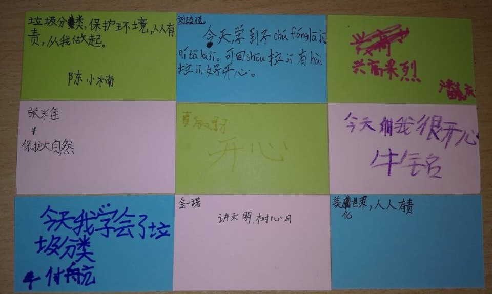 在讲座内容结束之后,还开展了一次简单的环保公益知识竞赛,内容以垃圾分类知识为主,体现趣味性、知识性与实用性。小朋友们充分利用讲座中学到的知识和生活常识,表现都非常优秀,最后我们也赠送了奖状作为奖励和纪念品。小朋友们也给我们写下了一些听讲座的感受体会。我们呼吁小朋友多多和家人朋友宣传垃圾分类的知识,让大家都能将想法化为实际行动。此次垃圾分类讲座在小朋友的欢笑中顺利结束了。