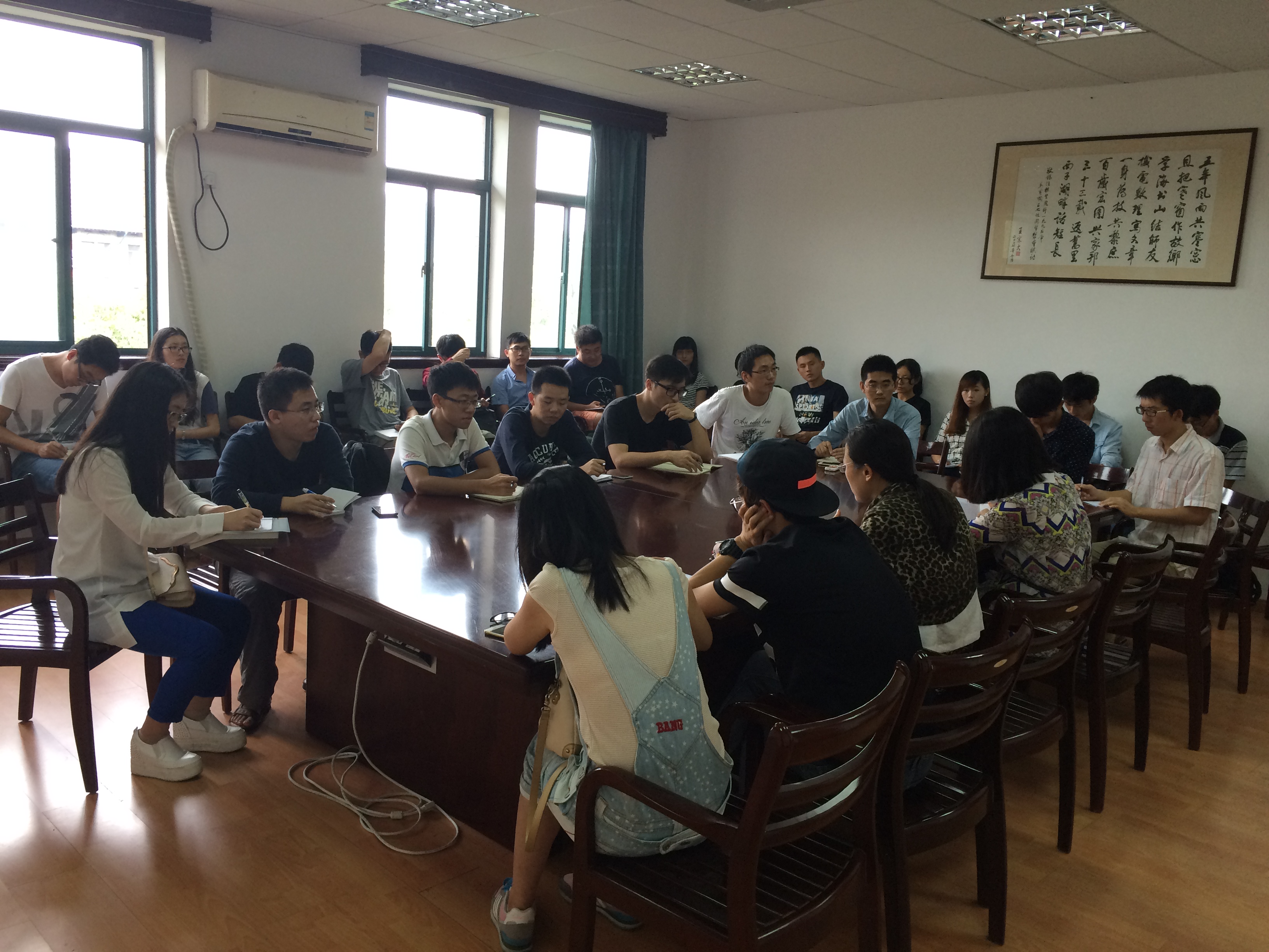 9月23日下午,beat365平台唯一官网研究生党总支召开新学期第一次全体支部书记大会,专题学习“三严三实”精神、习总书记给浙大教师回信精神并部署新学期工作。会议由学院党委副书记王玉芬老师主持,研究生辅导员杜锦佩老师、全体研究生党支部书记共30余人参加了会议。