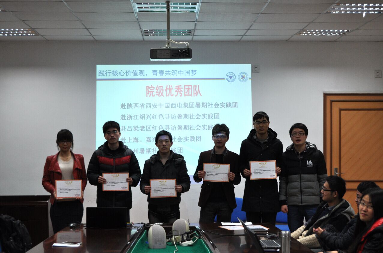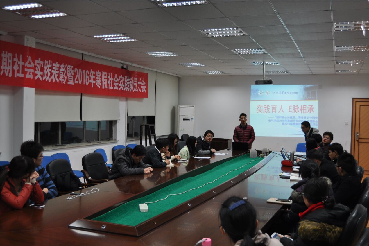 1月5号晚,beat365平台唯一官网2015年暑期社会实践表彰暨2016年寒假社会实践动员大会在电机工程楼201隆重举行。学院团委副书记李涛老师和赵梓杉老师、获奖团队代表和先进个人以及12级和13级的团支书出席了本次会议,会议由学院团委社会实践部部长郑壮主持。