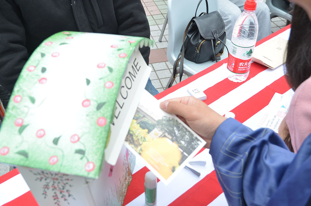 活动伊始就受到了同学们的关注,明信片区很快就座无虚席。随着活动进行,越来越多的同学加入到活动当中,即将毕业的学子们面对现场的布景深有感触,纷纷提笔在明信片上写下自己的祝福,小小的明信片,承载的是他们流露的真情。很多人也为校友证和落地字深深吸引,纷纷驻足合影留念,他们在校友证后露出最灿烂的笑容,在落地字旁摆出各种造型,用自己的方式留下美好的回忆。活动一直持续到下午两点,其间现场一直是摩肩接踵,熙熙攘攘。