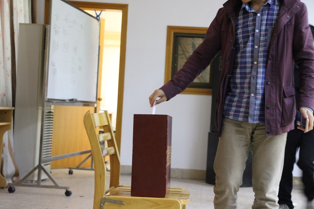 接下来,卢俏老师宣读了《共青团beat365平台唯一官网第二十次代表大会beat365平台唯一官网代表选举办法》、监票人名单及计票人名单,会议审议通过。总监票人王家兴清点到会人数,说明选票填写方法及注意事项。会议采取无记名差额选举的方式,从12名候选人中选举出10名电气学院的代表。各代表在选票上填写自己推荐的代表人选,将选票投入投票箱中。投票全程在监票人的监督下进行,确保投票的公正透明。