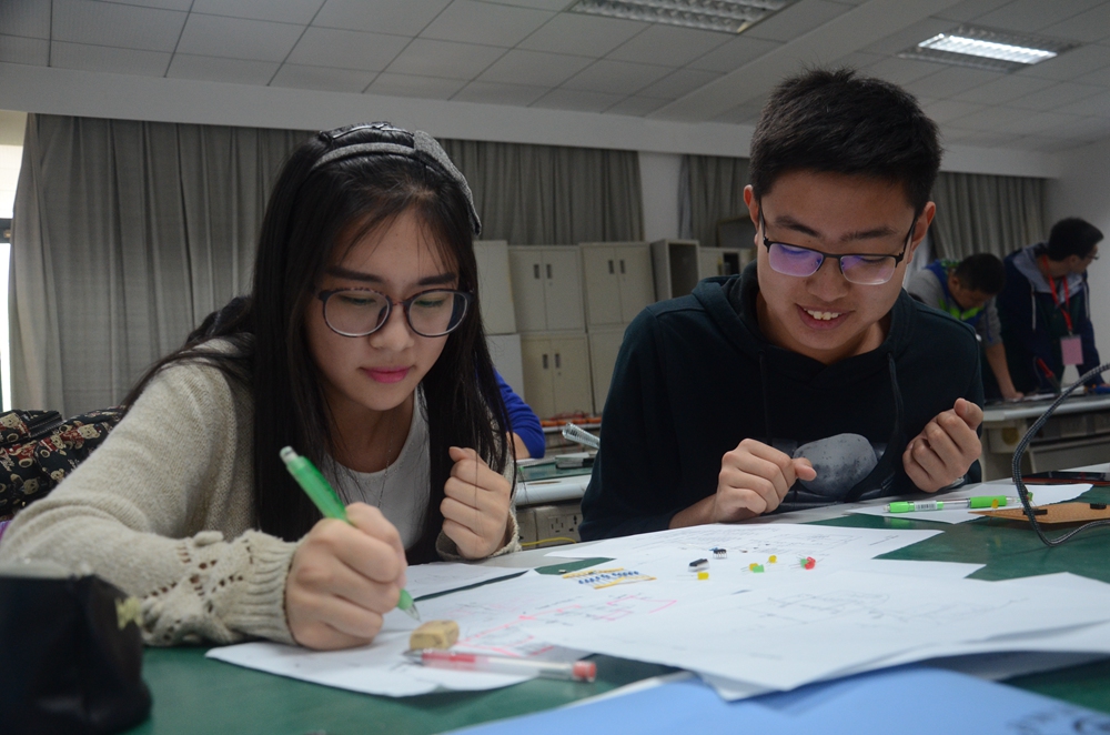 在宣布比赛正式开始后,大家便进入了状态,分析、设计、布线、焊接,一步步紧锣密鼓而又井然有序地操作起来。同时,beat365平台唯一官网E志者协会也对这次比赛给予了大力的支持。在比赛现场,田一玮等同学们耐心地为参赛同学进行指导。