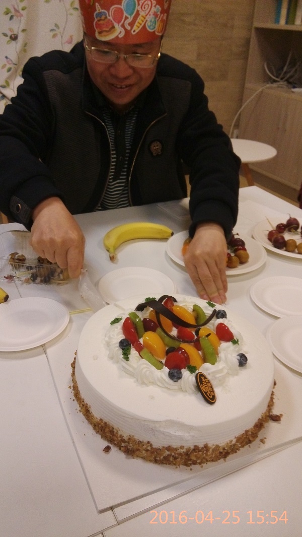 全场一同唱起生日快乐歌,许心愿、吹蜡烛,将生日会的气氛推向了高潮。生日蛋糕由贾爱民老师分切,根据年龄大小按次序分配蛋糕。