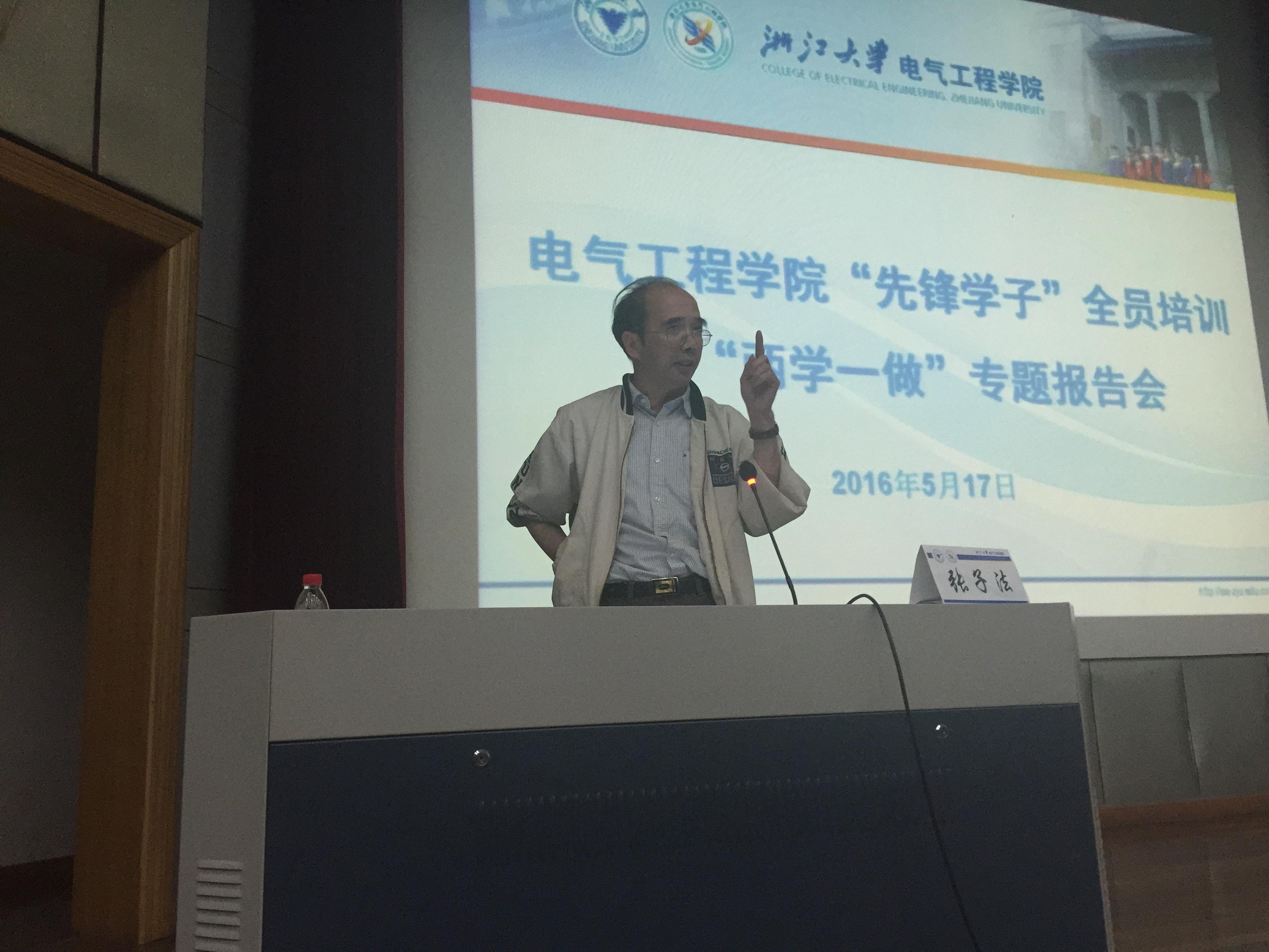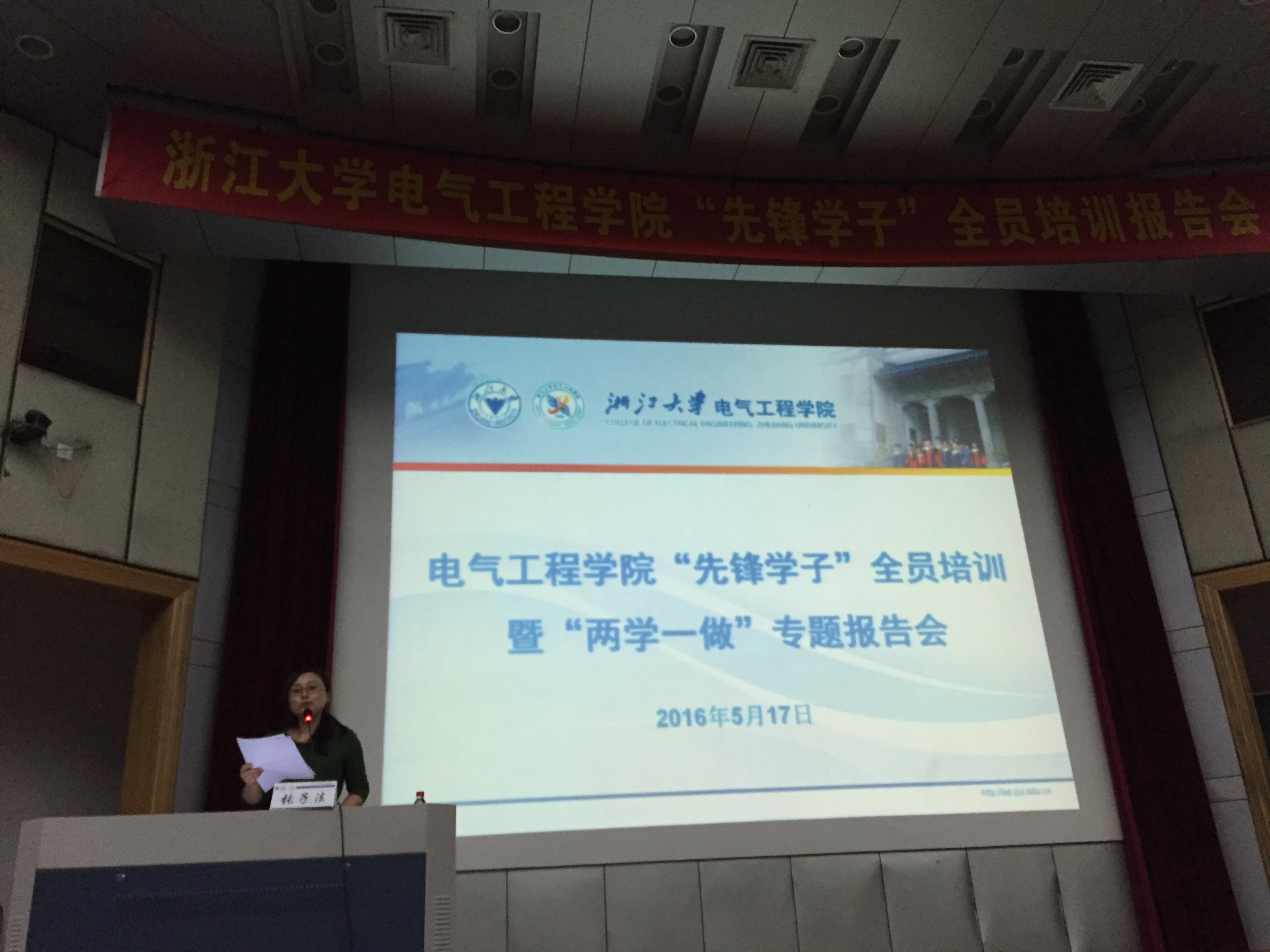 5月17日晚,beat365平台唯一官网“先锋学子”全员培训暨“两学一做”专题报告会在教七影视厅顺利举行。本次报告会邀请到中共beat365平台唯一官网纪律检查委员会委员、副书记兼办公室副主任、监察处副处长张子法老师为学院师生讲解中国共产党廉洁自律的传统文化基因。出席本次报告会的还有学院党委书记王瑞飞老师、党委副书记陈敏老师、院长助理沈建新老师、团委全体辅导员以及全体学生正式党员。
