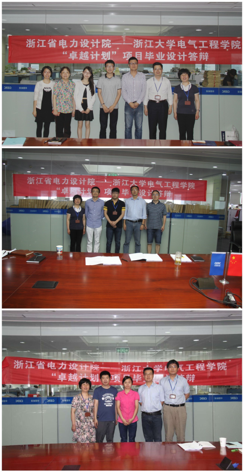 2016年5月27日开始,“卓越工程师计划”电气班的毕业设计答辩陆续拉开序幕。“卓越工程师计划”电气班包含电自和电控两大方向,电自方向共9位同学,分别在国网北京经济技术研究院、中国能源建设集团浙江省电力设计院有限公司、浙江省电力公司电力科学研究院、浙江省电力公司杭州市电力设计院四个企业开展实习;电控方向共4位同学,均在东元总合科技(杭州)有限公司开展实习。13名同学在各企业中开展了为期一年的实习,并结合工程实践完成了毕业设计项目。答辩期间,各实习单位的多名专家组成相应的答辩委员会,并组织专场答辩会,圆满完成了毕设审核与评价工作。