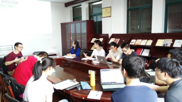 首先,党支部书记詹焕友同志带大家一起回顾了这学期支部所举办的各项活动,包括两次支部学习会,支部发展大会和预备党员转正大会,微话题、微党课活动,以及支部的立项活动。陈敏老师对于支部活动取得的成果表示赞赏,同时也给出了中肯的建议。