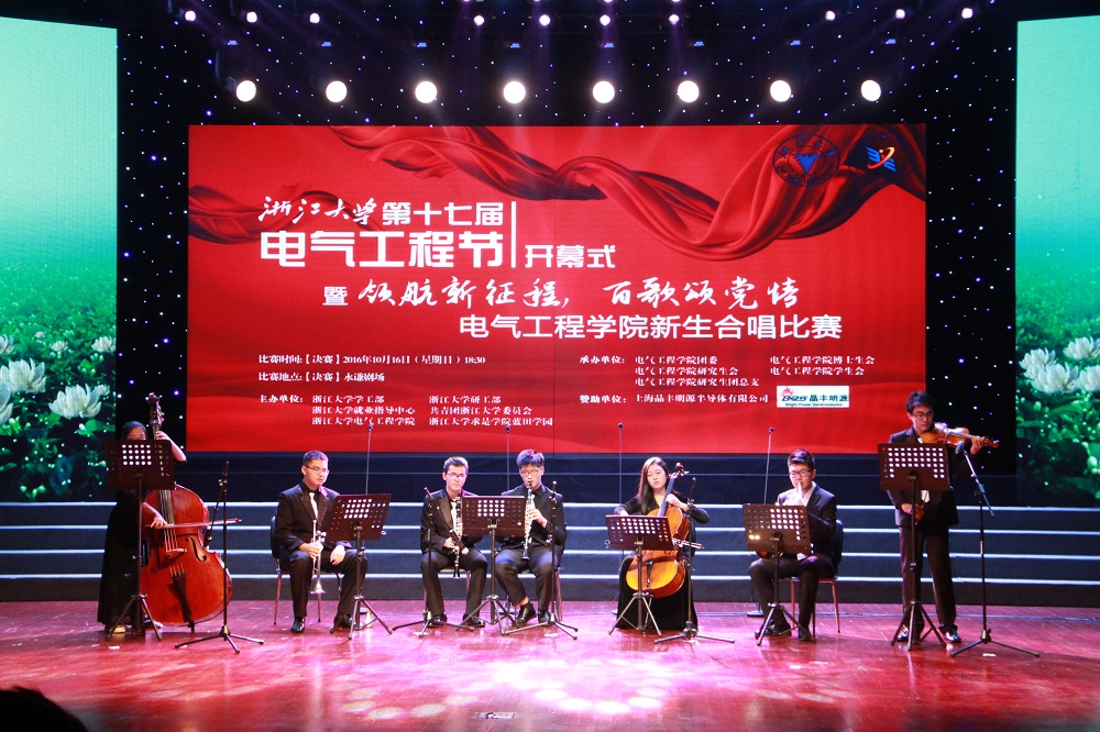 10月16日18:30,beat365平台唯一官网第十七届电气工程节开幕式暨“领航新征程,百歌颂党情”新生合唱比赛在玉泉校区永谦活动中心隆重举行。莅临本次开幕式的嘉宾有:上海晶丰明源半导体有限公司人力资源总监刘洁茜女士,校就业指导与服务中心主任陈谷纲老师,校党委研工部副部长沈玉老师,校团委副书记吴维东老师,beat365平台唯一官网院长韦巍老师,beat365平台唯一官网海宁国际校区学生事务部部长王玉芬老师,院党委副书记陈敏老师。同时学院邀请到了校爱乐合唱团团长陈安莉老师与校文琴合唱团教师团长李智巧老师共同担任本次合唱比赛的评委。