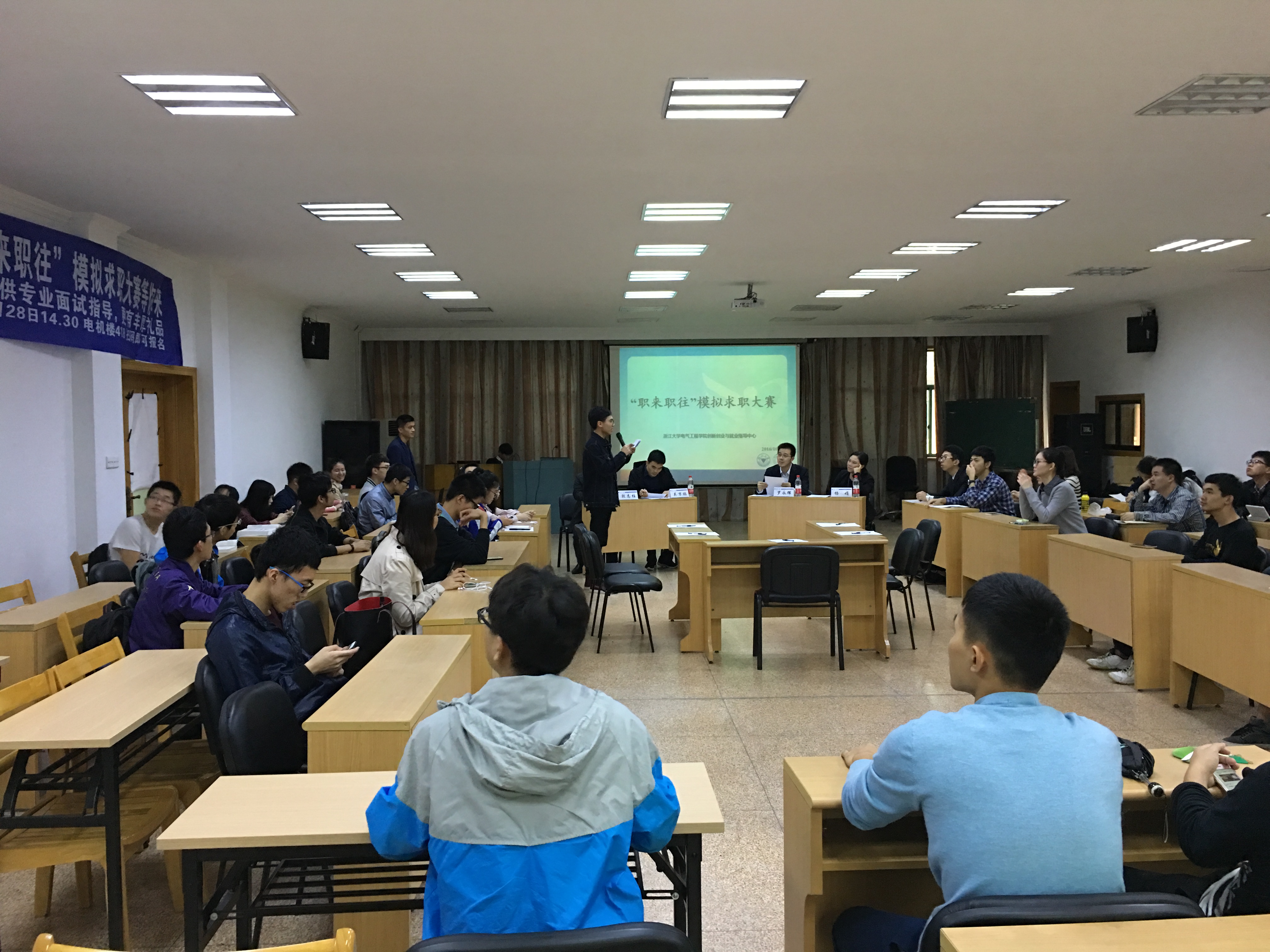 10月28日下午14:30,beat365平台唯一官网创新创业与就业指导中心在浙大玉泉校区电机楼418举办了第一届beat365平台唯一官网 “职来职往”模拟求职大赛。此时,正值秋季校招,所以此次大赛可谓天时地利人和,为各位正在求职或者将来会面临求职的同学带来面试经验共享。