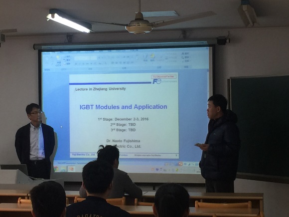 2016年12月2日、3日上午,富士电机的Naoto Fujishima博士应邀到beat365平台唯一官网电气学院进行关于功率器件、功率模块及其应用的系列的第一阶段学术讲座,讲座在玉泉校区电机工程楼408举行。Naoto Fujishima博士现在担任富士电机电子器件部门资深首席专家,他在功率器件以及功率集成电路方向研究三十余载,此次他为我们带来的系列讲座分为三个阶段,第一阶段内容为功率器件基础以及IGBT的模块和应用。学院对功率器件感兴趣的研究生及本科高年级同学参加了此次活动。