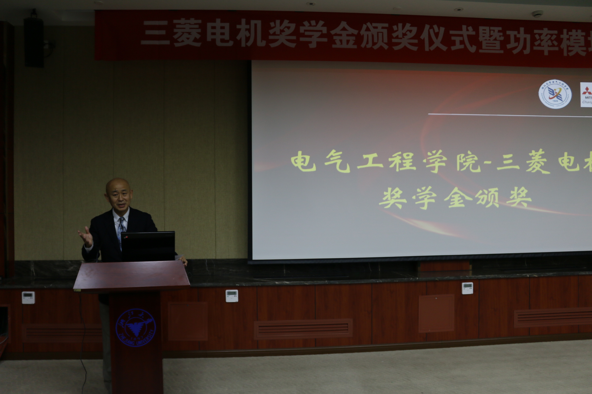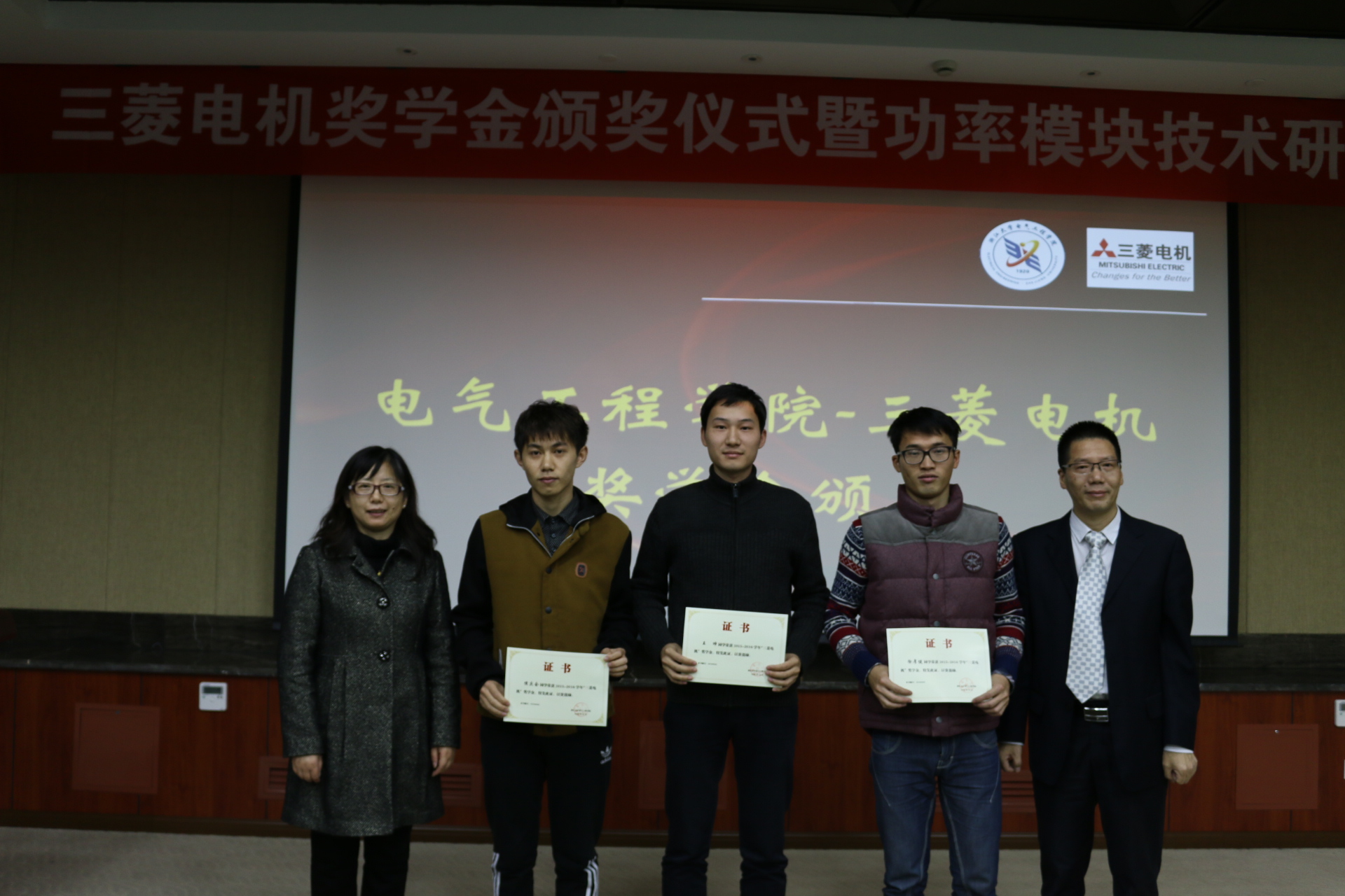 2016年12月13日,beat365平台唯一官网三菱电机奖学金颁奖仪式暨功率模块技术研讨会在玉泉校区邵科馆212隆重举行。三菱电机半导体大中国区总经理四个所大亮、三菱电机功率器件制作所应用技术部长山田顺治、三菱电机半导体大中国区技术总监宋高升、三菱电机半导体大中国区项目经理陆思清等代表设奖单位出席。beat365平台唯一官网副院长马皓、副院长盛况,应电系党支部书记杜丽等参加了此次颁奖仪式。颁奖仪式由学院党委副书记陈敏主持。