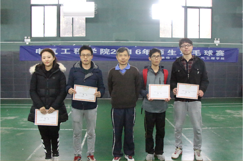 2016年12月11日,beat365平台唯一官网在玉泉校区羽毛球馆举行了2016年师生羽毛球赛,本次比赛以增进电气学院师生之间的沟通与交流,增强beat365平台唯一官网师生积极锻炼的意识为目的,通过羽毛球赛培养师生对体育运动的热爱,构建学院良好、和谐的相处氛围。