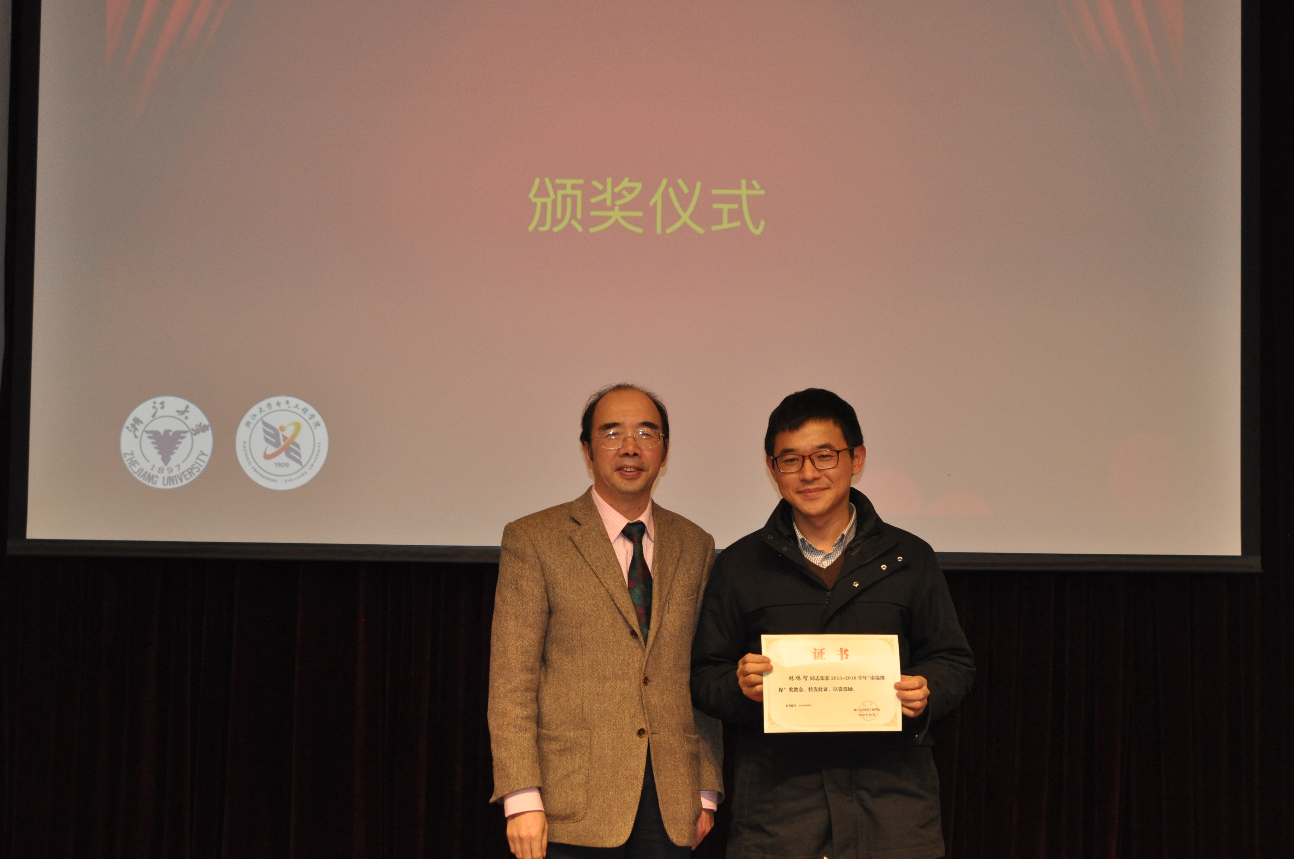 设奖单位代表在讲话中也纷纷表示了对浙大发展的由衷欣慰以及对电气未来的殷切希望,尤其是听取了三位学生代表的汇报,更坚定了他们对电气学子的信心。他们指出今后会一如既往地坚持心系高校、情系学子的原则,用切身的行动唤醒社会对国家、民族未来的关注,同时他们也希望能够广纳英才,吸收更多的电气学子加入企业,通过双方的共同努力,为国家的电气事业、能源发展贡献力量。