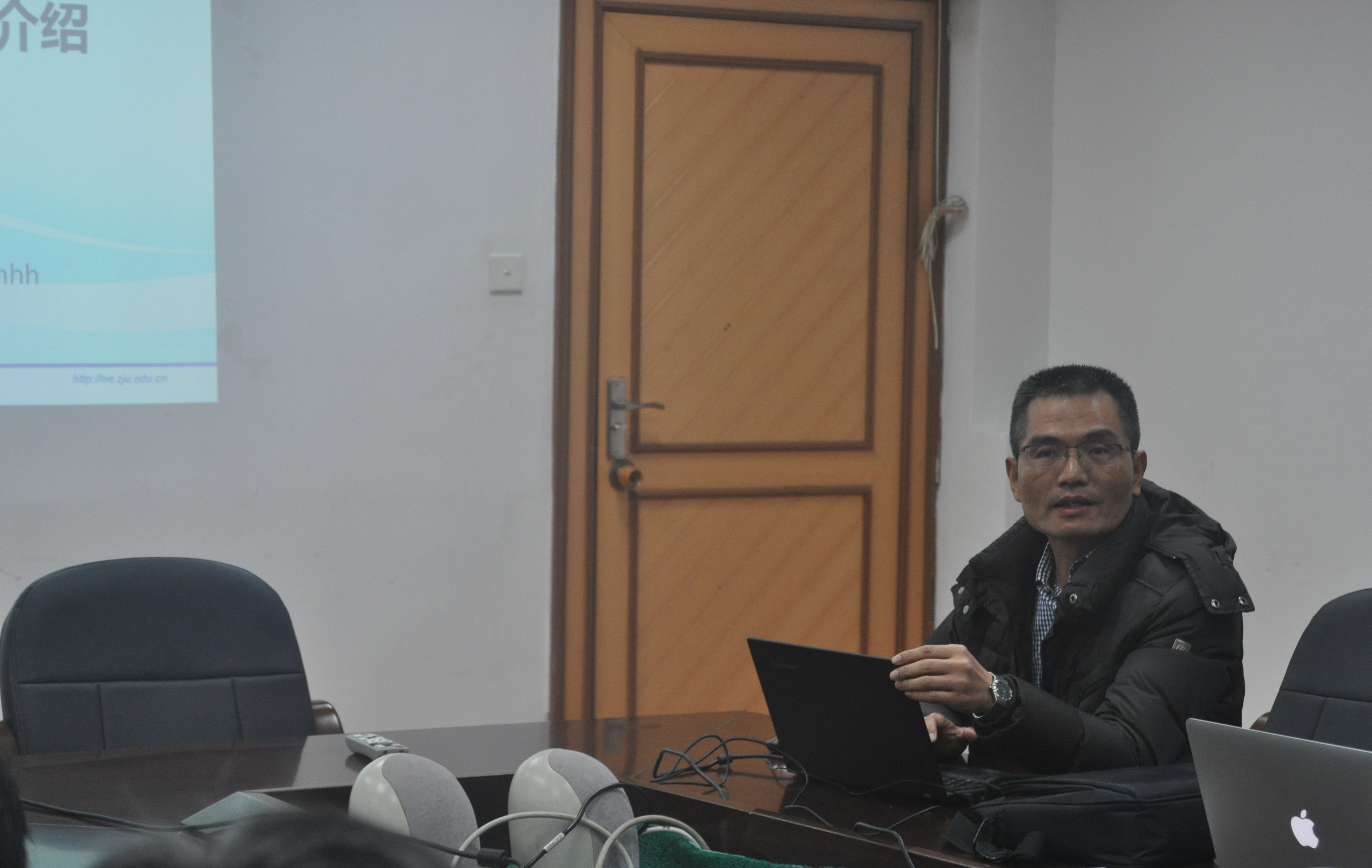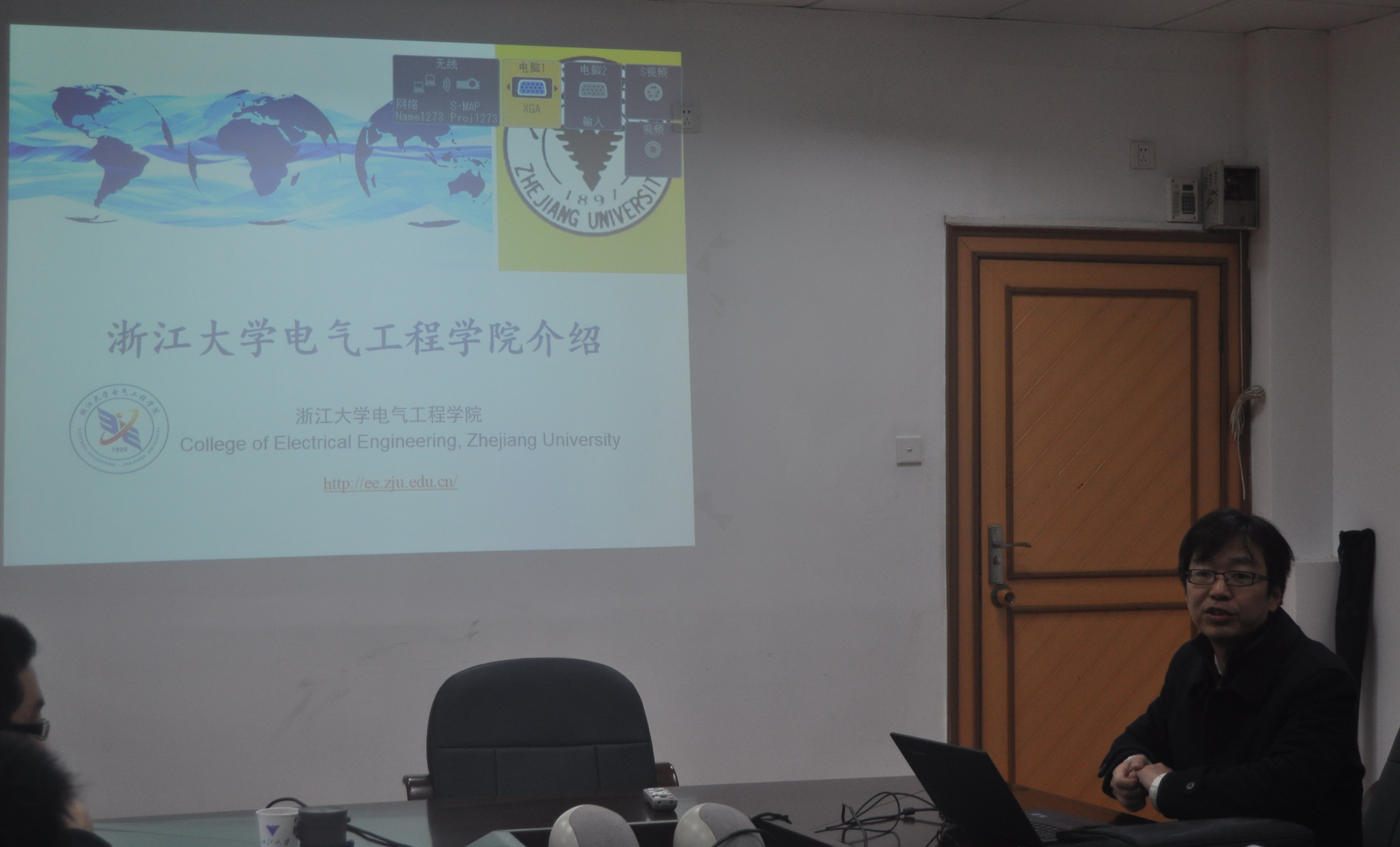 盛况副院长向考察团介绍了学院的概况。郭创新副书记介绍了电力系统及其自动化学科的基本情况,并针对摘箬山岛建设的“海流能发电与海岛新能源供电关键技术研究”示范项目等特色科研方向进行了分享。