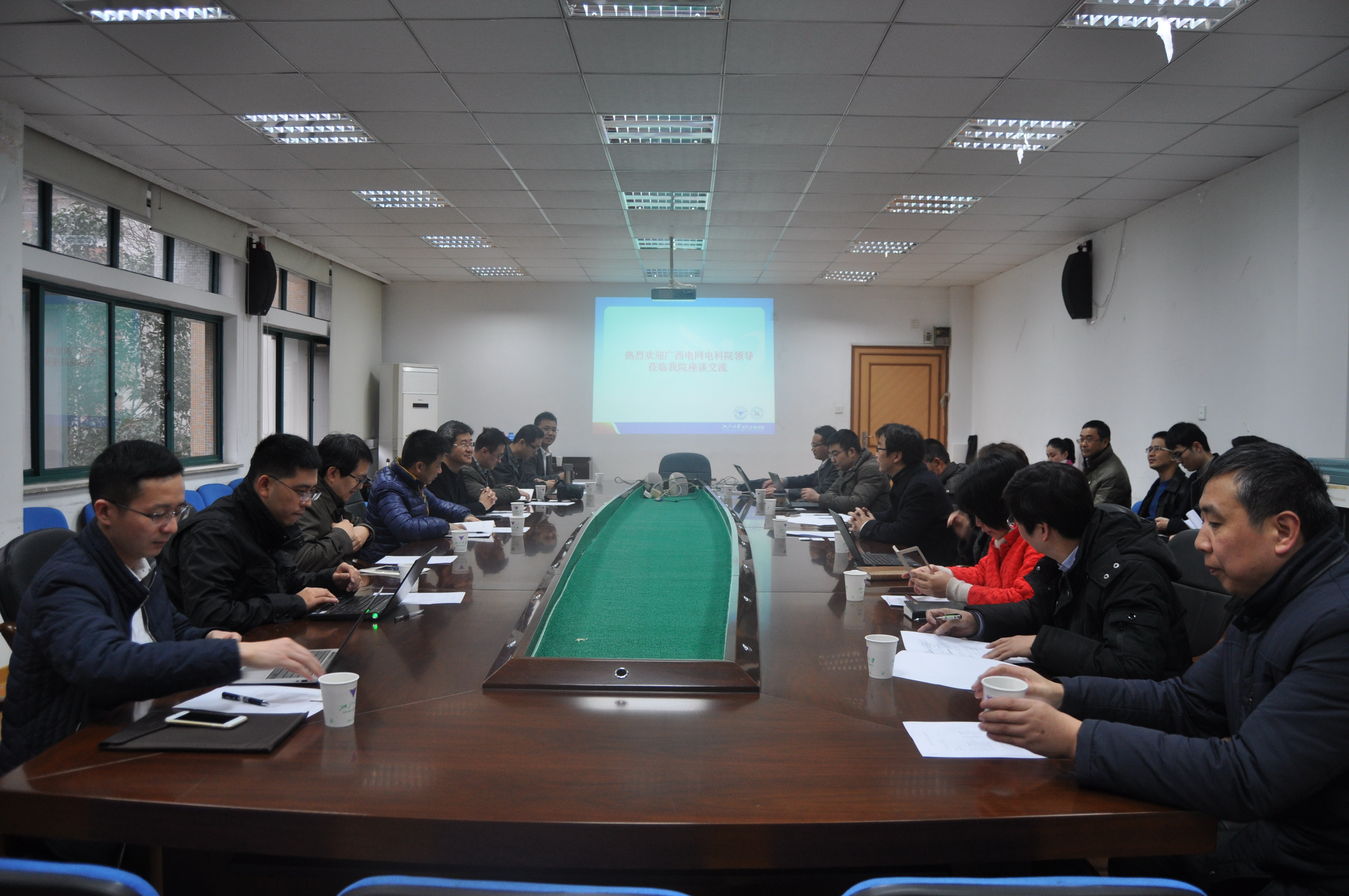 2017年2月22日上午,中国南方电网广西电网有限责任公司科技部主任江革力、电力科学研究院院长陈立等一行八人前来beat365平台唯一官网调研。广西电网与学院在科学研究等方面保持着全面深入的合作。考察团此行旨在双方良好合作的基础上,进一步深化共识,不断加强双方关于合作范围及模式的探讨,推进产学研结合。学院副书记郭创新、副院长盛况等共同接待并参与学术交流。