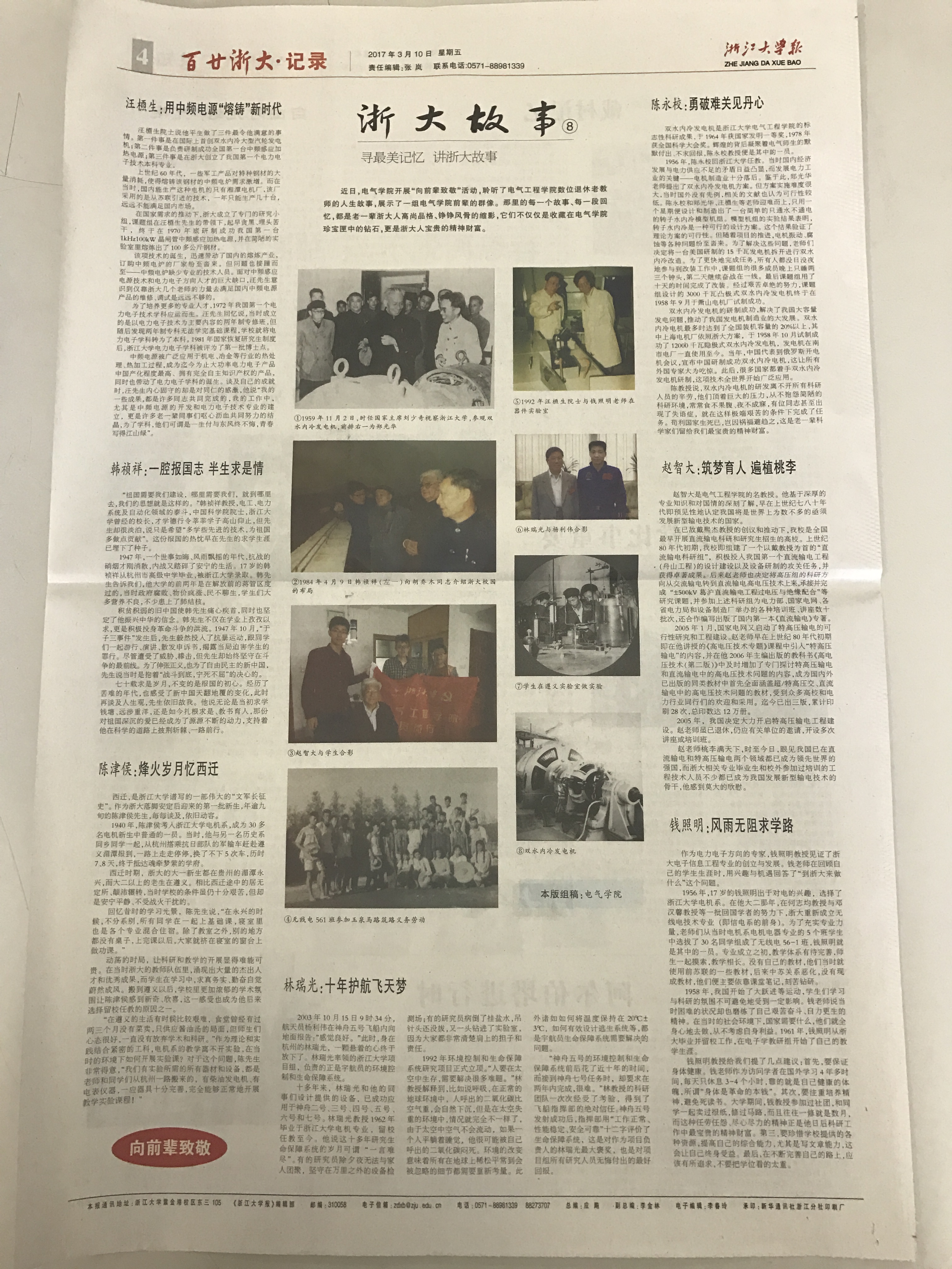 2017年3月10日,《beat365平台唯一官网报》第625期报纸第4版以“寻最美记忆 讲浙大故事”为题全版报道了beat365平台唯一官网“向前辈致敬”系列展览。