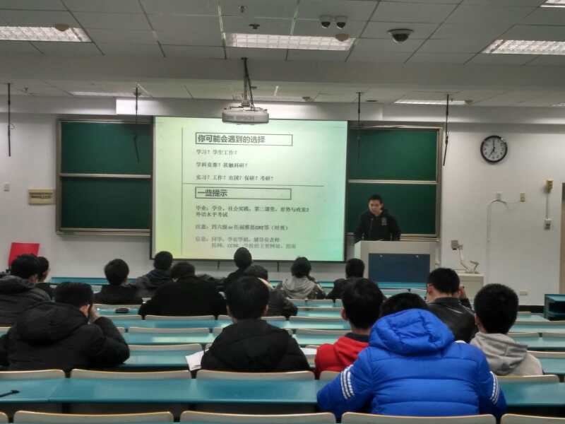 在讲座最后的答疑环节中,两位嘉宾与同学进行了热烈的交流。学院辅导员苗晓明老师也在活动最后启发同学们要敢于尝试,定立目标,鼓励同学们要努力奋斗,超越学长们的辉煌。