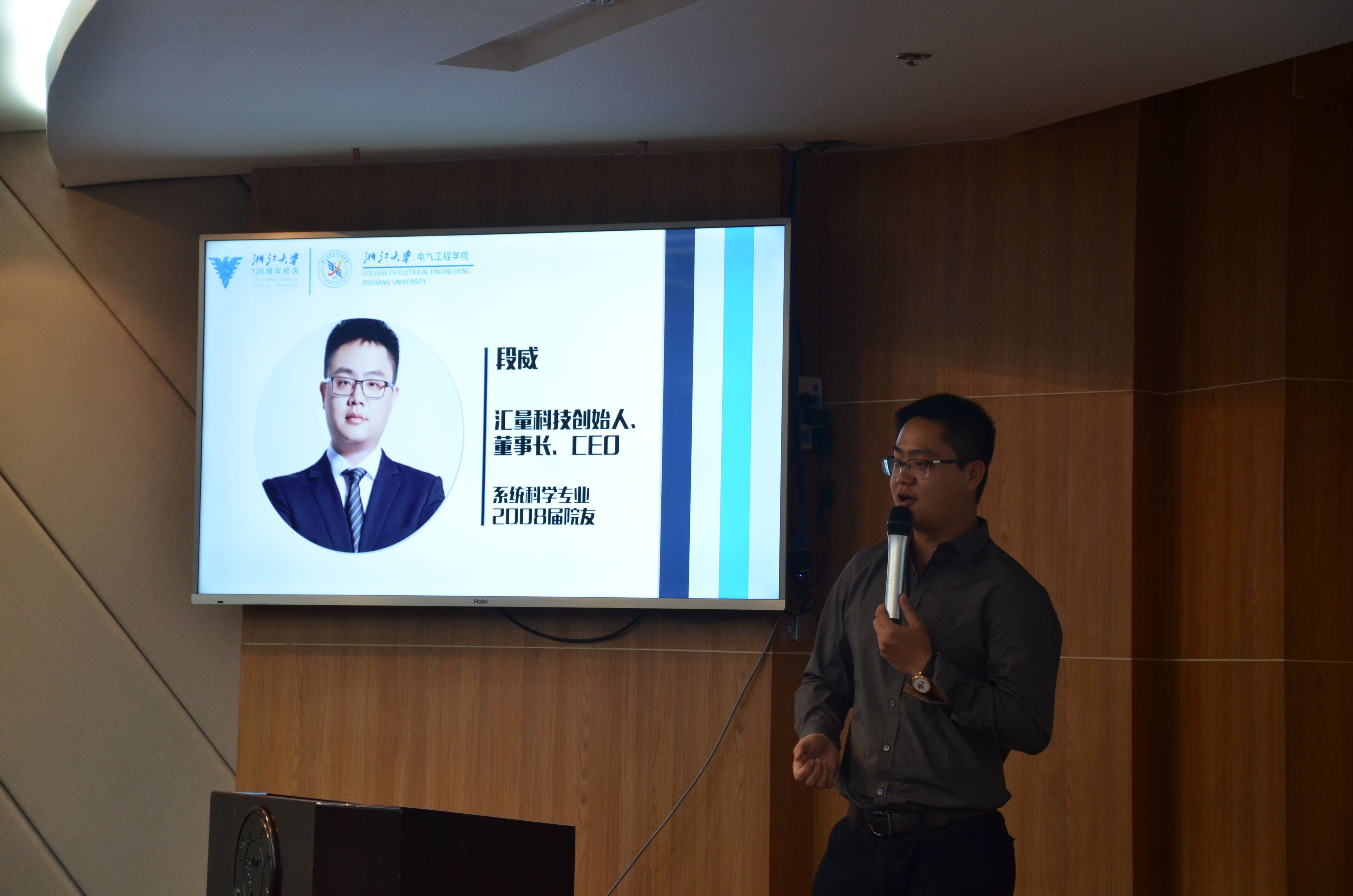 在王瑞飞老师的致辞中,王书记提到创业是浙大的优秀品质,创业精神值得电气学子自豪。电气学院历史悠久,学院发展史本身就是一部创业史,出席论坛的三位嘉宾都是电气学院的创新创业代表。近十年来,电气学院人才队伍建设、生源质量、科研水平提高迅速、成绩突出,希望这些精神、责任、意识能够通过创新创业论坛得到强化。王书记也寄语电气学子要引领浙大文化,引领行业发展,引领社会进步。