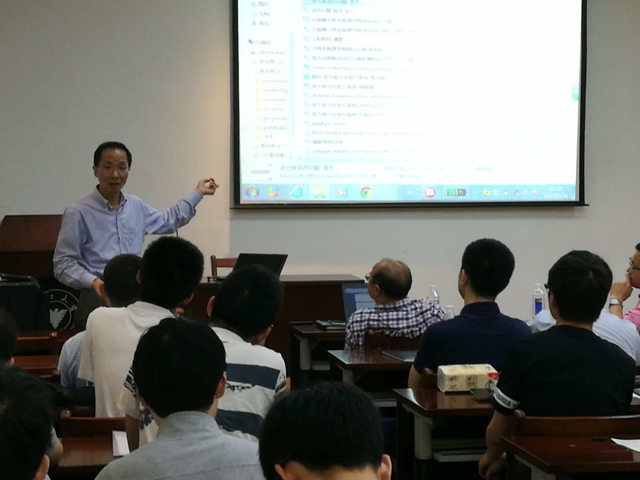 2017年5月26日,在玉泉校区教二121室举办了一场精彩的讲座。华中科技大学电气学院袁小明教授作了“电力电子化电力系统的多尺度动态问题与幅相动力学理论”的讲座。