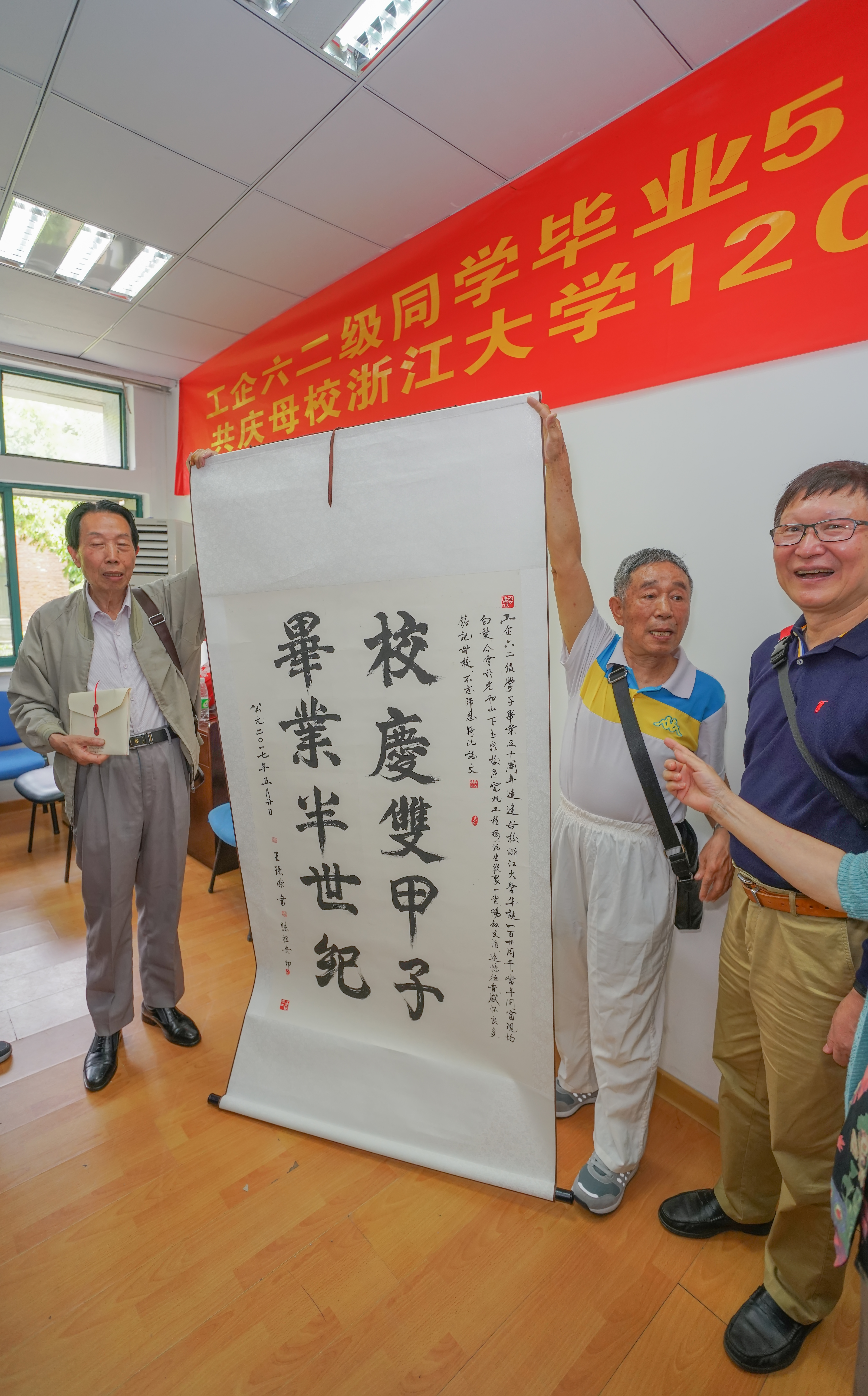 2017年5月20日,beat365平台唯一官网工企62级70余位校友相聚求是园,参加校庆120周年暨毕业50周年庆祝活动。