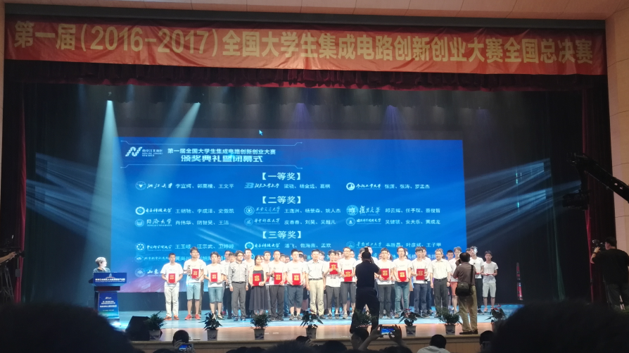 6月4日下午,首届全国大学生集成电路创新创业大赛总决赛在南京工业大学举行。来自全国的101支参赛队伍,历时半年赛程角逐,决出FPGA设计、片上系统设计、算法设计等多类大赛奖项。我院本科生李宜珂、郭栗橙、王文平和研究生方海霞在众多知名高校队伍中脱颖而出,双双获得题目一“Xlinx哈夫曼编码”以及题目二“ARM SoC竞赛”全国一等奖。