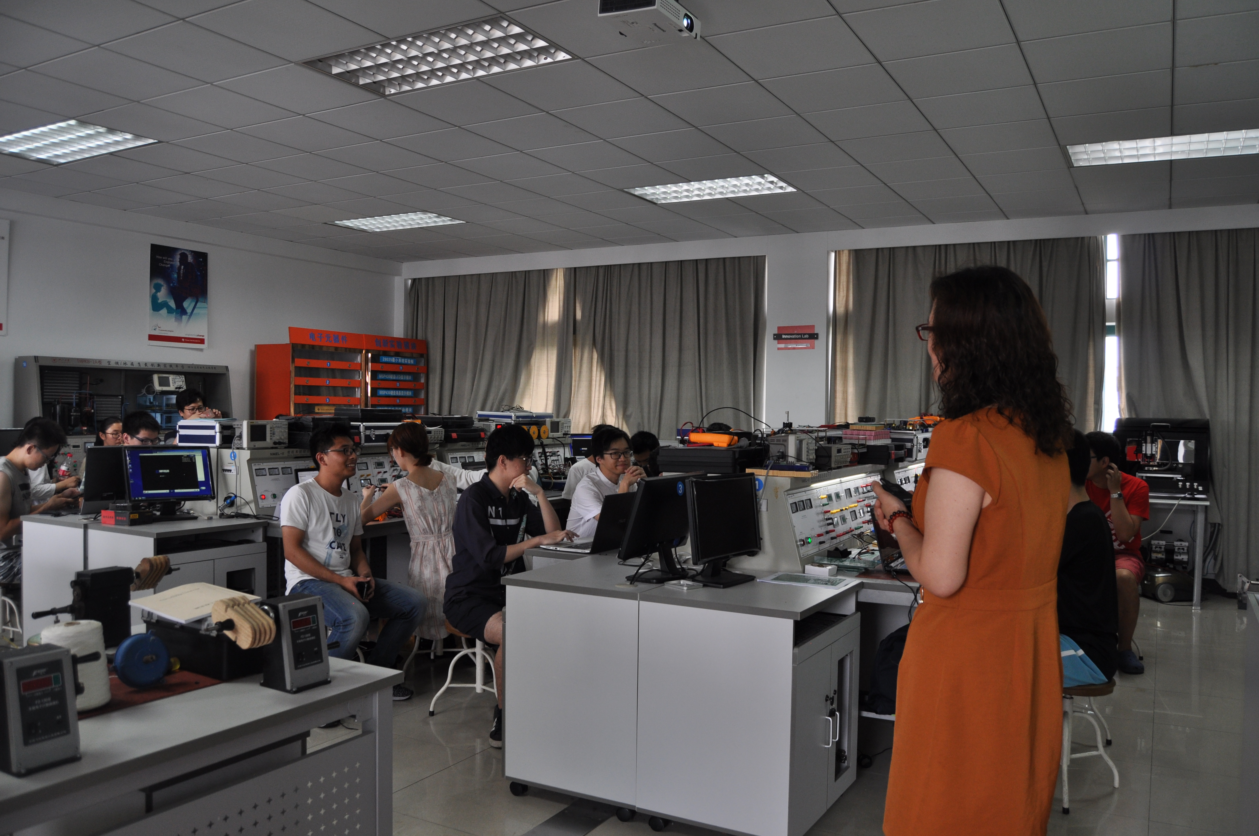 经过一个学期的相处,同学们都迷上了这样一个学习氛围浓厚的环境。机械电子工程大二的詹同学是唯一一名坚持选这门课程的大二同学,在卢老师的指导鼓励下,在学长、学姐的关心帮助下,顺利完成了“分立器件功率驱动板”项目,他说这门“自由大、形式广、重实践、氛围好”的实验课为他的大二生涯添上了浓重的一笔,尽管最后一次走出实验室时,心中充满了不舍,但是“这门课程所带给我的收获将会伴随着我一路前行,卢老师和学长学姐所感染我的那种求是与探索的精神也会支持着我度过每一段困惑”。