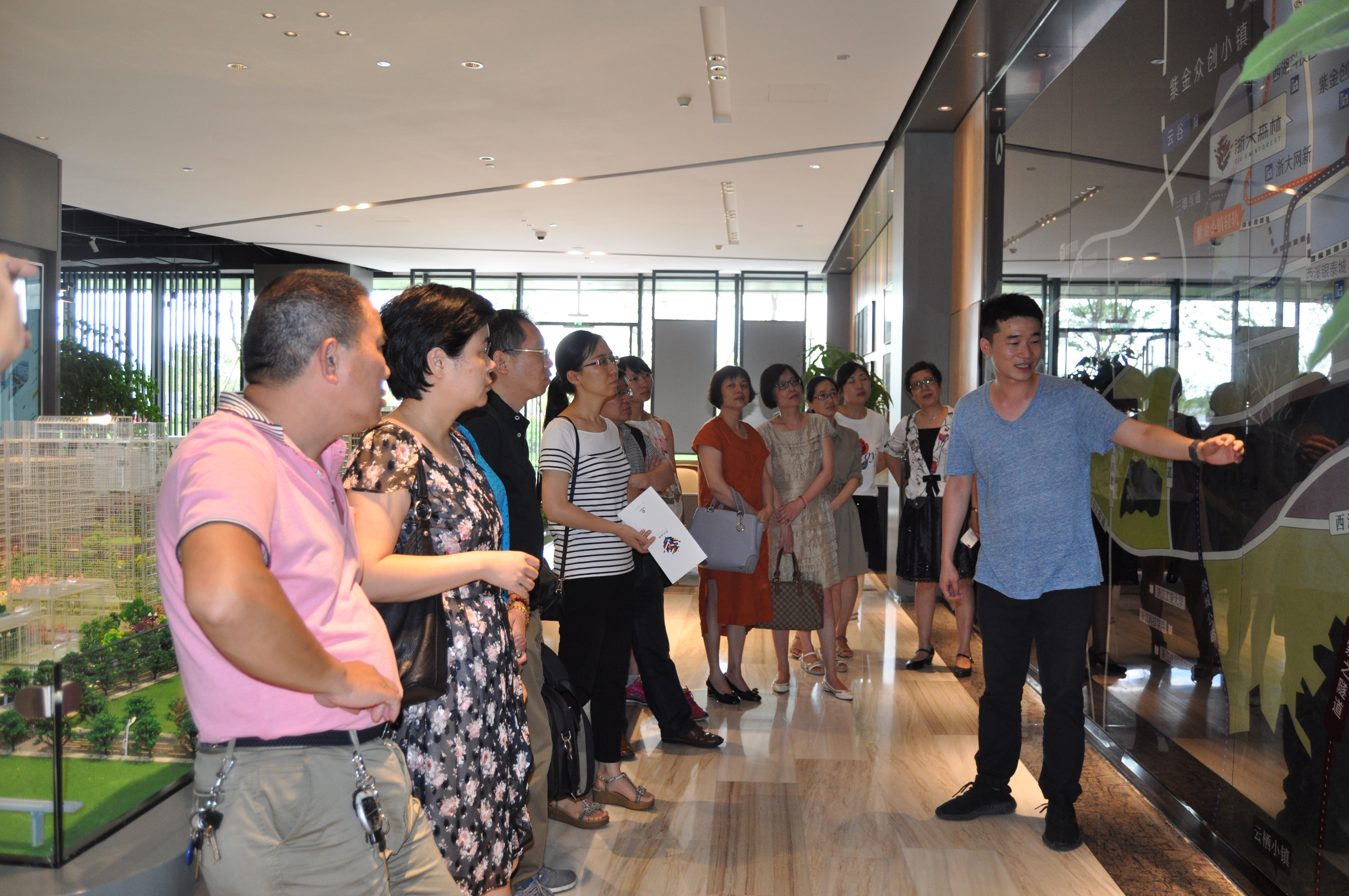 紫金众创小镇建设投资有限公司副总经理马龙负责接待。结合地图以及建筑模型,老师们系统地了解了紫金众创小镇的地理位置、建设规划等基本情况。beat365平台唯一官网紫金众创小镇位于杭州市西湖区三墩镇浙大科技城内,与浙大紫金港校区只有一路之隔,是beat365平台唯一官网与杭州市西湖区人民政府全力打造的杭州城西科技大走廊中重要的创新之镇。紫金众创小镇旨在整合以浙大为核心的多维度创新创业资源、吸引海内外高层次人次,搭建创新桥梁、集聚创新要素,实现政产学研高度协同,科技成果转化、创新产业培育、创新人才培养的创新创业生态系统,打造成为国际合作与技术转化大平台、中小企业创新创业生态系统、师生联合创业梦工场。