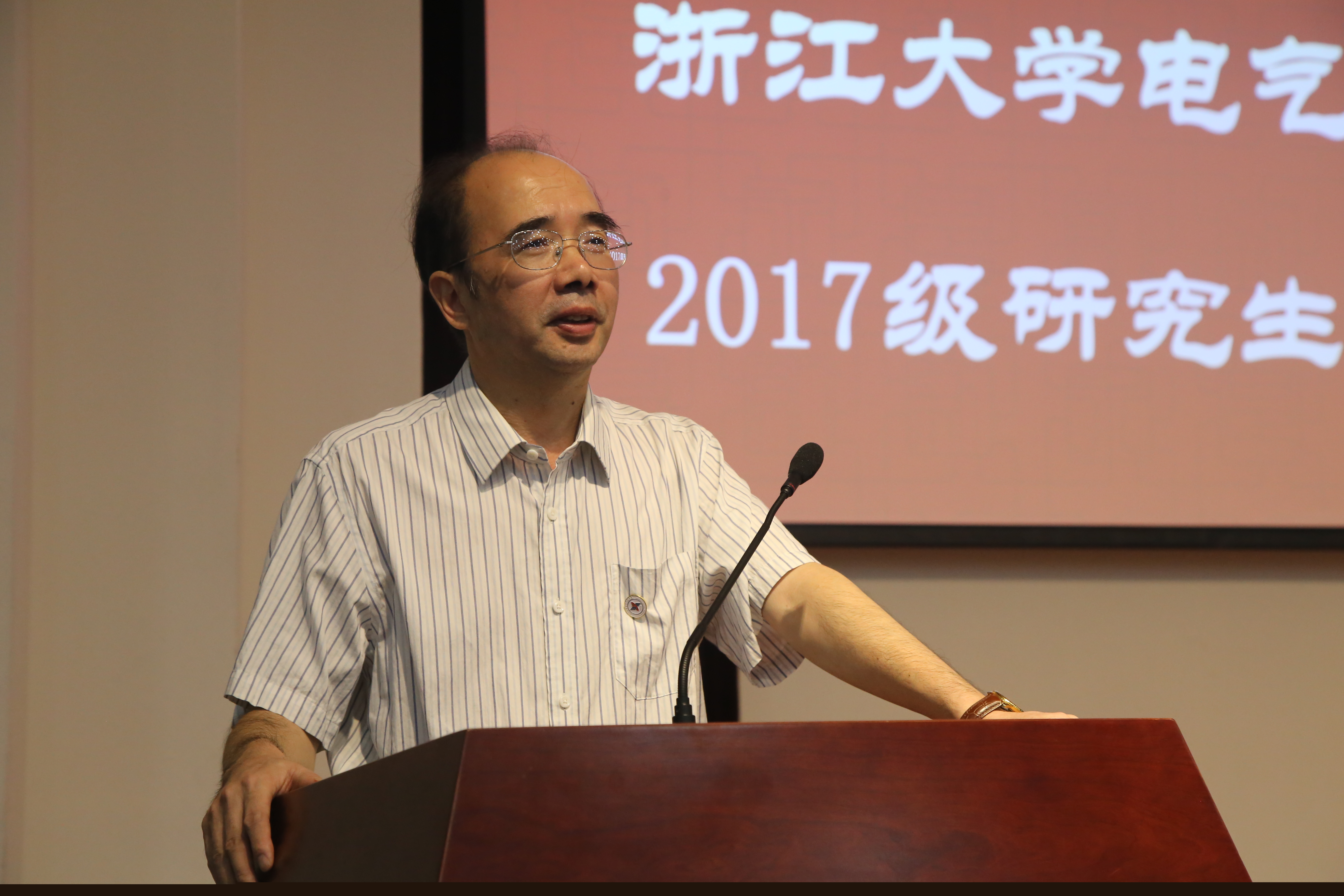 最后,学院党委书记王瑞飞老师代表学院领导、老师们向在场同学送上寄语,同时也对新生们提出了四点希望:重新规划自己未来的道路、端正心态、强健体魄以及树立一流的意识。他指出,17级的研究生同学要始终牢记浙大电气人的使命,不忘学院优良传统,培养开放的心态,努力做到兼容并包,争取做出社会和人民永远不会忘记的贡献。