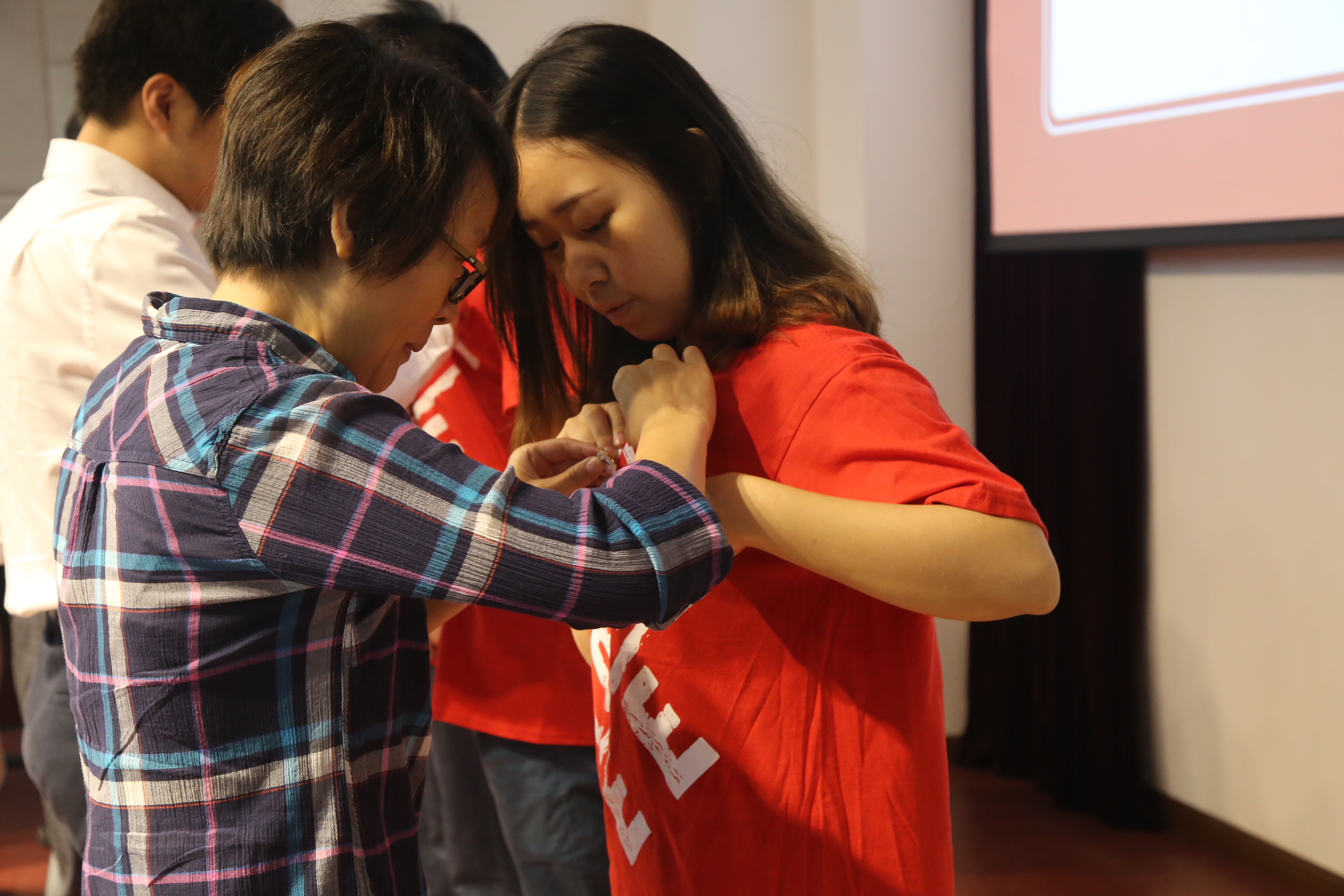 在导师寄语的环节中,各专业学科的导师代表也通过视频向新生表达了诚挚祝福,提出了殷切期望。紧接着,新生代表上台为17级研究生德育导师献花,花香氤氲下,涌动着新老一辈传承的力量,师生间的浓情与友爱在会场流淌。