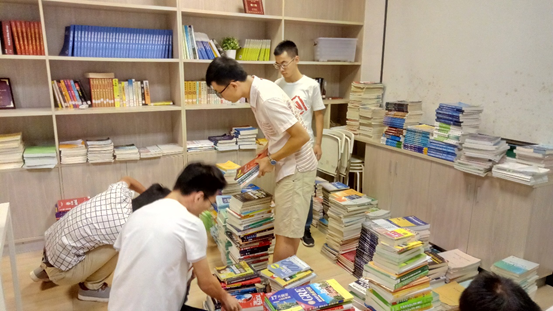 活动中发放的书籍包括大三、大四专业课书籍,托福、雅思、GRE等英语备考资料以及考研的各科材料等。其中大部分来源于2013级毕业生们毕业时的慷慨捐赠。晚上六点三十分,悦空间门口已排起长队,同学们有序排队进入,填写信息并仔细选择领取的书籍,登记后有序离开。
