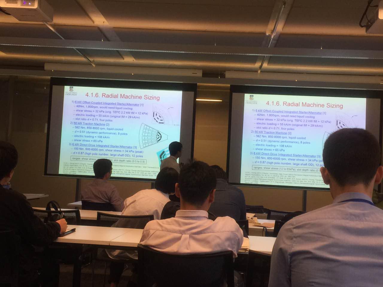 会议举办了多场Oral Session和Poster Session。与会者发表了大量的学术成果,学生可在交流环节与不同专家进行学术交流。我院沈建新老师主要展示了他在方波驱动的同步磁阻电机的转矩脉动方面的研究成果,获得了众多教授学者的赞赏与肯定。诸自强教授在会议上就电机铁耗评估模型的研究进行了阐述,该模型考虑了更多影响电机铁耗的因素,使模拟实际电机铁耗更加精确。该成果引起了在座教授学者极大的关注。与会期间,我校众多优质论文得以展示,并取得极大收获。访学团一行通过与与会专家的交流以及与国内外其他院校学生的交流,逐渐确立了自己未来将要研究的方向,并且对各个领域所研究的内容和进展有了更加深刻的认识。