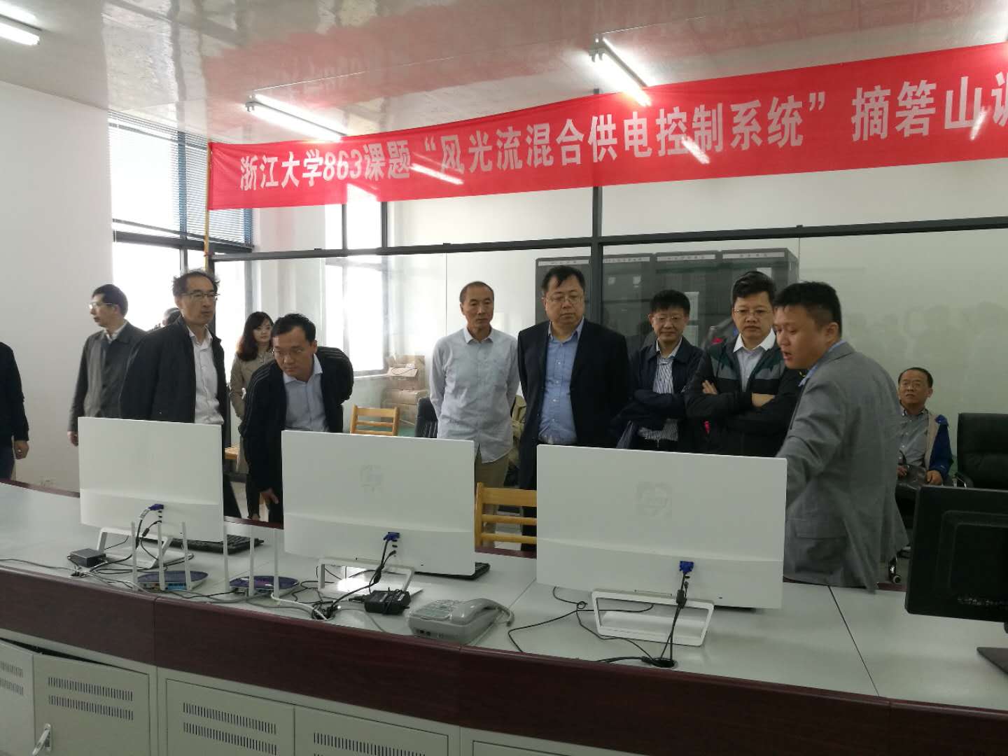 项目验收专家和科技部领导首先乘坐beat365平台唯一官网紫金港号赴浙江舟山摘箬山岛示范点进行现场考察。项目首席专家韦巍教授给专家介绍了示范工程的建设情况。辛焕海教授给各位专家介绍了海岛新能源供电系统多模式运行及无缝切换等功能。