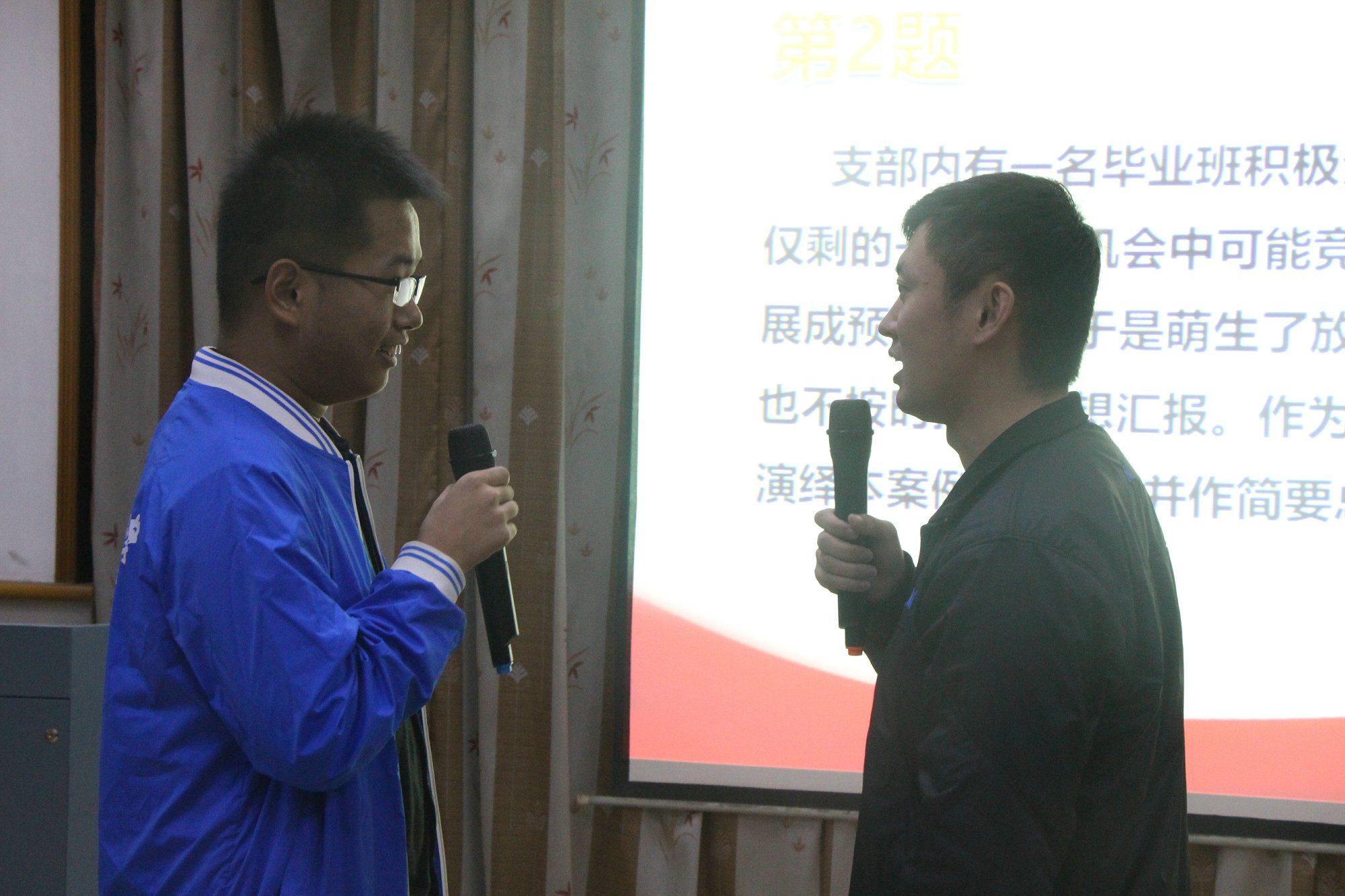 在紧张刺激的情景模拟环节,参赛支部书记根据现场抽取的案例分析题目,以情景演绎的方式完成。这些题目取材于基层党支部在工作实践中面临的困难和挑战。面对“百般刁难”,党支书们镇定自若,通过坦诚细致的沟通将问题一一化解,展示了良好的工作态度、工作能力和工作方法,演绎过程生动展现了党支部书记应有的责任意识和应变能力,妙趣横生的情景模拟将比赛气氛进一步推向了高潮。