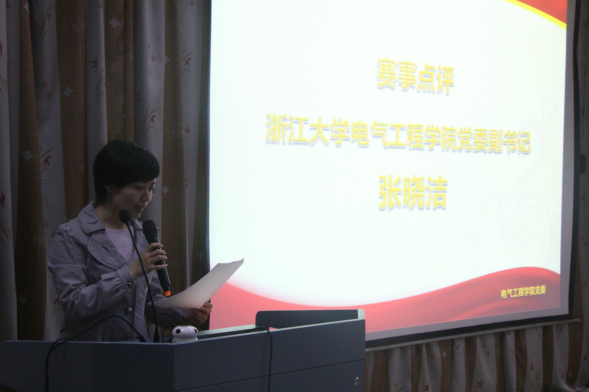 在“微党课”环节,党支书们围绕十九大、四讲四有、五水共治、浙江精神等话题展开热议,一节节党课表达清晰准确,案例生动翔实,可谓精彩纷呈,深深感染了现场评委和观众。党务知识测试环节注重考察党支书的党建工作实务,对推优、党员发展过程中的工作规范做了细致的测试,选手们的表现体现了电气学院党支书们扎实的党务素养。