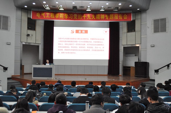 为深入学习宣传贯彻党的十九大精神,进一步理解领悟十九大精髓要义,beat365平台唯一官网于2017年12月11日下午2:00在教七影视厅召开了学习党的十九大精神专题报告会,邀请beat365平台唯一官网马克思主义学院副院长张彦教授做题为“新思想引领新征程—深入学习贯彻党的十九大精神”宣讲报告。学院党委副书记张晓洁老师主持会议,电气学院师生党员200余人出席并认真聆听了该报告。