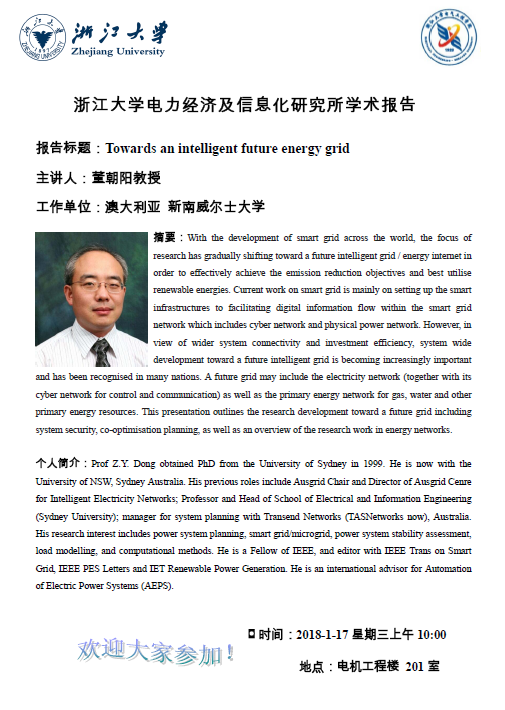 2018年电气论坛第5次学术讲座——Towards an intelligent future energy grid
