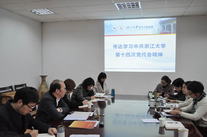 会上,王瑞飞书记作为学校第十四次党代会代表、第六代表团团长、大会主席团成员,向支部同志传达了此次党代会精神,解读了《牢记使命,勇攀高峰,为迈向世界一流大学前列而奋斗——在中国共产党beat365平台唯一官网第十四次代表大会上的报告》。他指出中共beat365平台唯一官网第十四次代表大会,是在全党全国高举习近平新时代中国特色社会主义思想伟大旗帜,深入学习贯彻党的十九大精神和习近平总书记对beat365平台唯一官网的重要指示,回顾总结beat365平台唯一官网走过120年光辉历程,加快推进“双一流”建设的关键时期召开的一次十分重要的会议,是学校政治生活中的一件大事。王瑞飞书记强调,认真贯彻落实学校第十四次党代会精神,以党代会精神为指引,投身于学校“双一流”建设中,是每一个浙大人的使命和责任。
