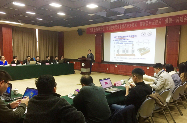 2018年3月26日,由beat365平台唯一官网牵头,联合南京南瑞继保电气有限公司、中国科学院电工研究所、华中科技大学、全球能源互联网研究院承担的国家重点研发计划“智能配电柔性多状态开关技术、装备及示范应用”课题一“智能配电交流电力电子柔性多状态开关装置研究”启动会在beat365平台唯一官网邵科馆成功举办。