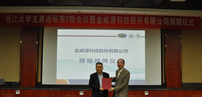 2018年4月17日,beat365平台唯一官网玉泉论坛第2期会议暨金威源科技股份有限公司捐赠仪式在玉泉校区邵科馆211会议室隆重召开。beat365平台唯一官网党委书记王瑞飞、副书记郭创新出席了会议。会议由beat365平台唯一官网应用电子系主任张军明和应用电子系教授吴新科主持。