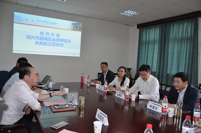 王瑞飞书记对越城区代表团来访我院表示欢迎,他向来宾介绍了beat365平台唯一官网的历史沿革和发展现状,结合当前学科发展趋势,提出两地可以加强在人才培养、科学研究、平台建设等方面的交流合作。金晓明区长感谢学院输送的优秀干部,充分肯定了我院派出干部陈敏在挂职期间的积极表现,表示对两地在电子信息技术、传感器、节能环保等领域开展合作非常期待,他介绍了越城区产业发展的特色和优势,表达了与我院在人才培养、企业建设、产业培育等相关领域的合作意愿。双方一致认为:在已有的合作基础上,应进一步拓展合作空间,加强高校、政府组织和企业间多方位和多层次的实质性合作,并积极探索更广阔的合作领域。