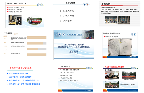 在述职报告会上,各位德育导师系统、全面地介绍了自己过去一学年研究生德育导师岗位上的工作。他们结合自己的工作实践和特色,也分享了自己对于研究生德育培养的深刻体悟。例如,姚维老师着眼于班级的党建工作,指出了研究生培养过程中党建工作的重要性;徐习东老师根据多年的德育导师工作经历强调了评奖评优工作对研究生的正向引导;杜丽老师则提出要利用微信、qq等新媒体渠道更好的掌握学生思想动态,从而有针对性的开展工作;林峰老师在总结过去工作成绩的同时也提出了对学院研究生的三点期望;郭清老师用精美的PPT和生动的介绍回顾了过去一年在实验室文化建设方面所做的工作和成效。
